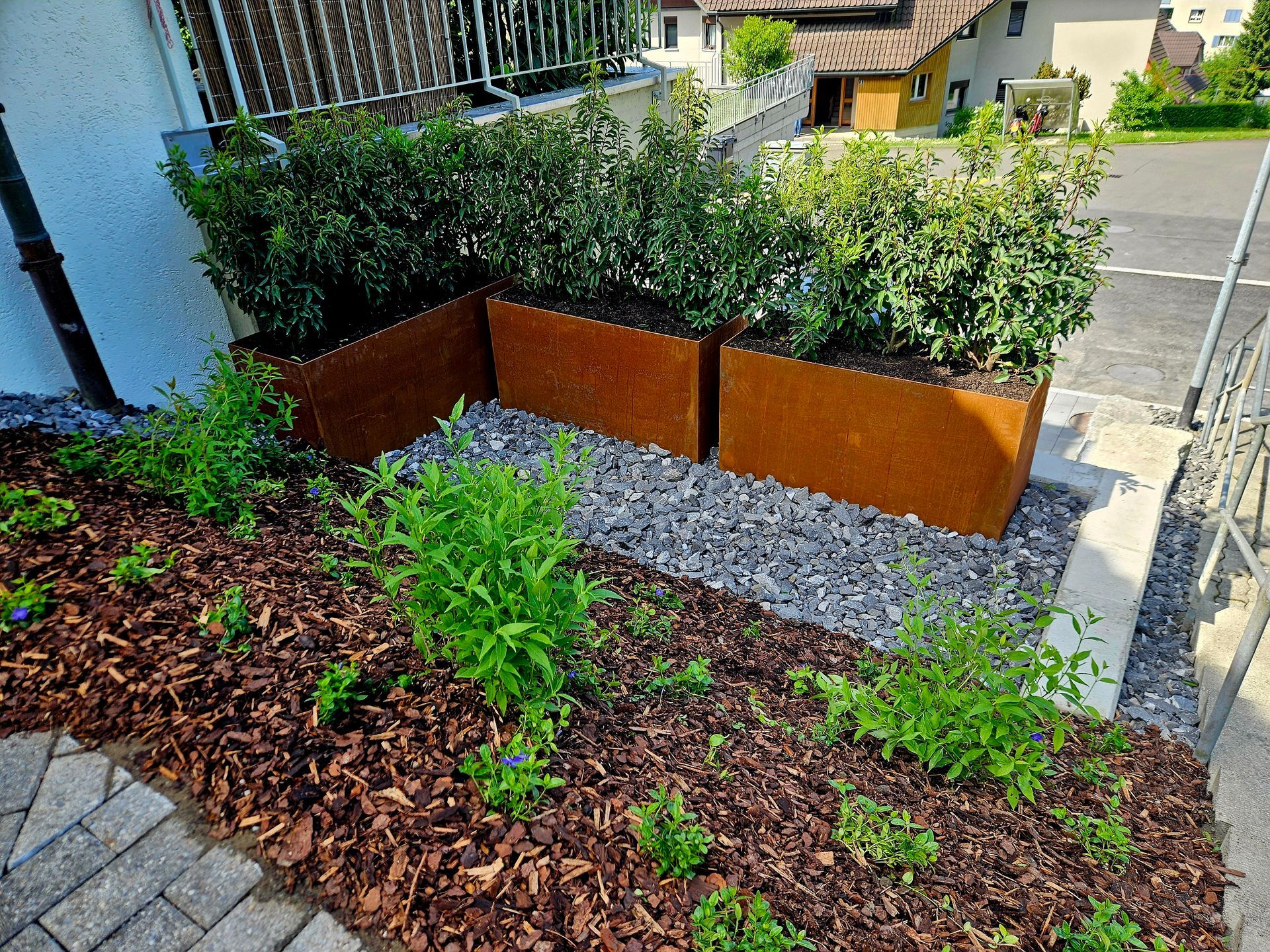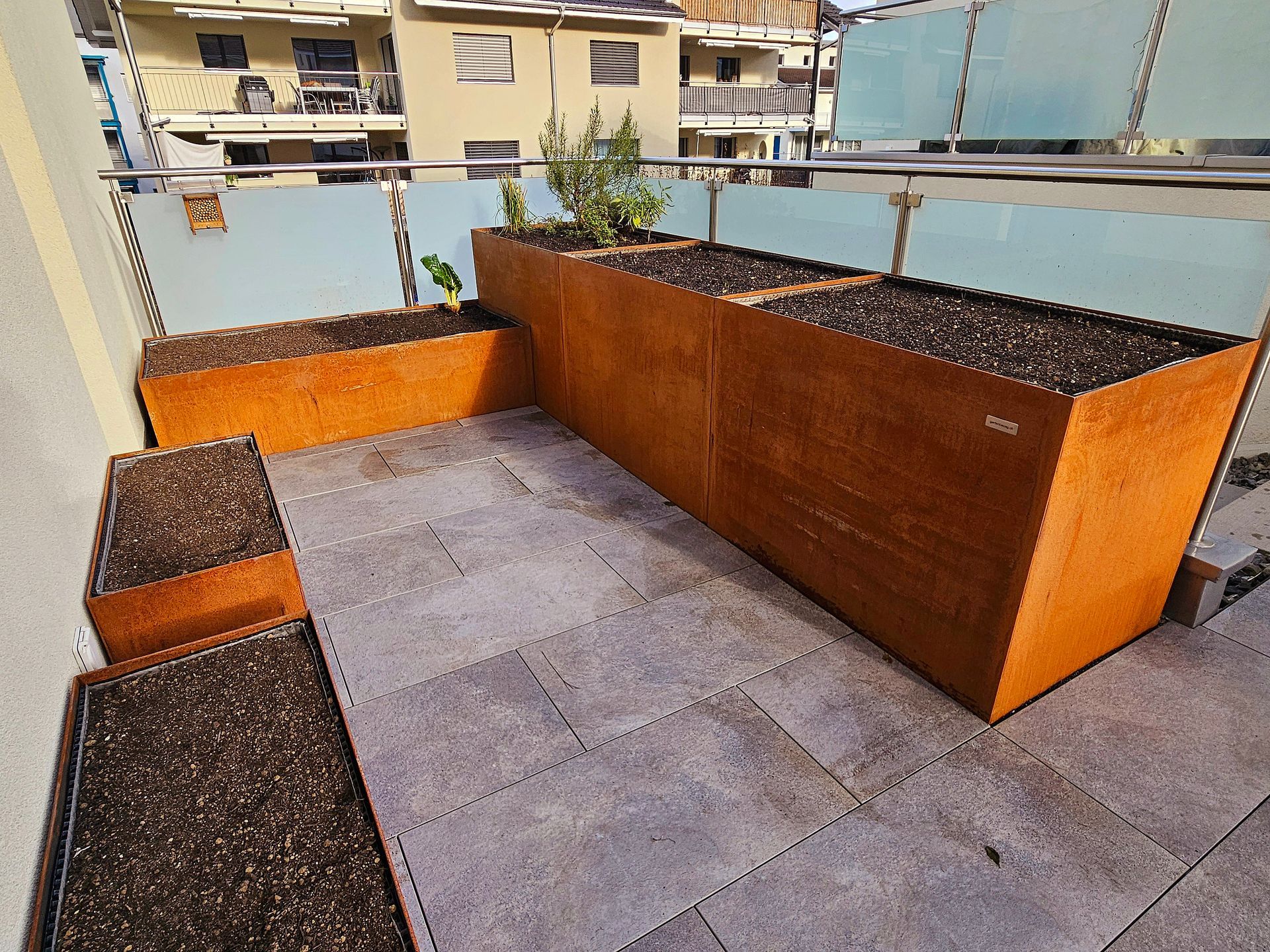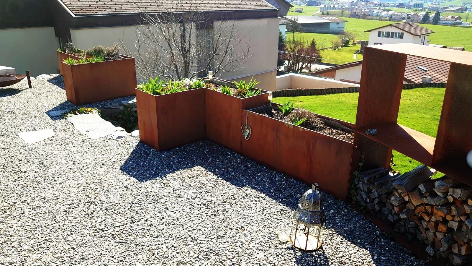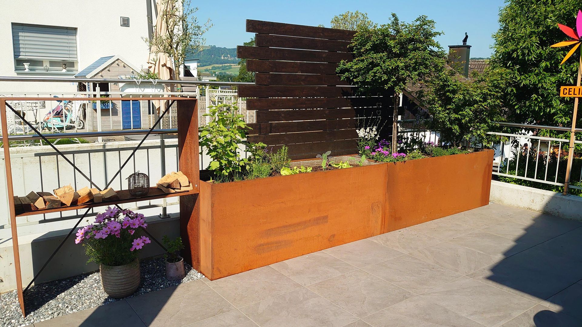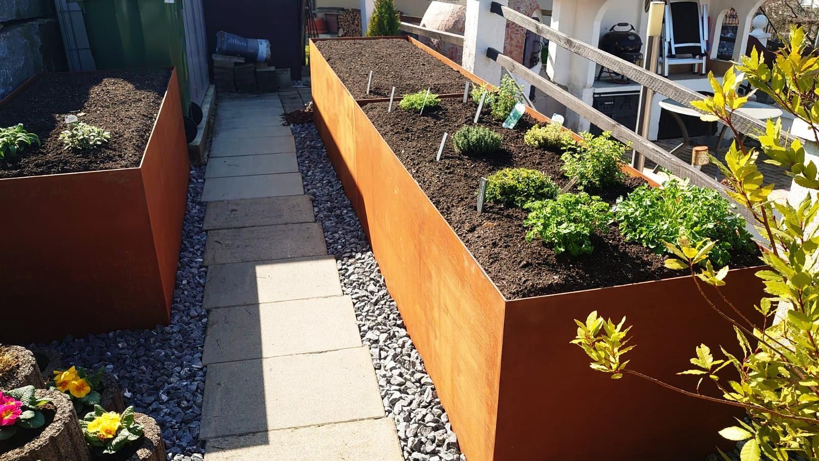 Unsere Hochbeete können individuell nach Mass angefertigt werden – in allen Grössen und aus einer Vielzahl an Materialien. Ob Flachstahl, mit rostiger Optik oder einbrennlackiert in verschiedensten Farben, wir setzen Ihre Wünsche um.